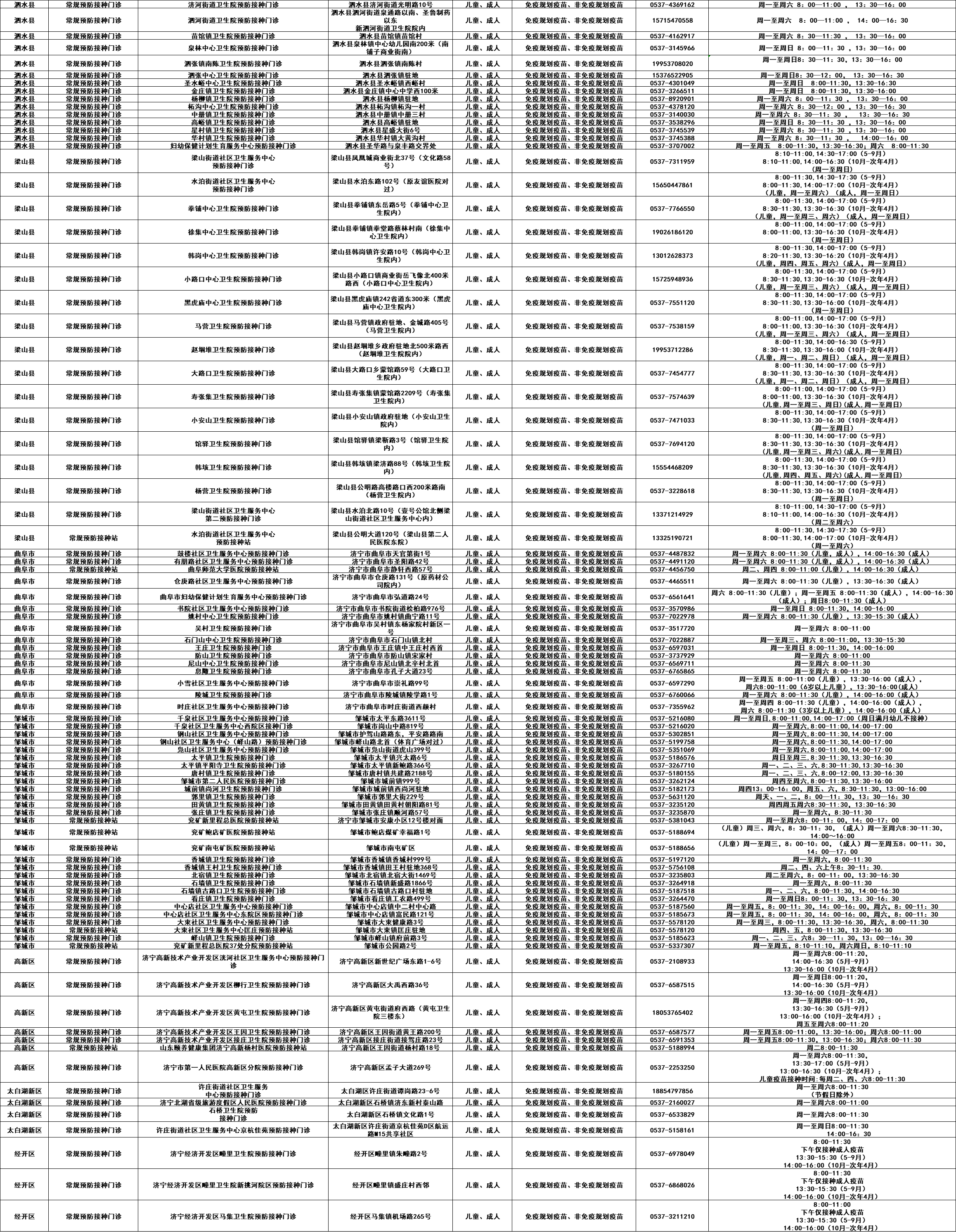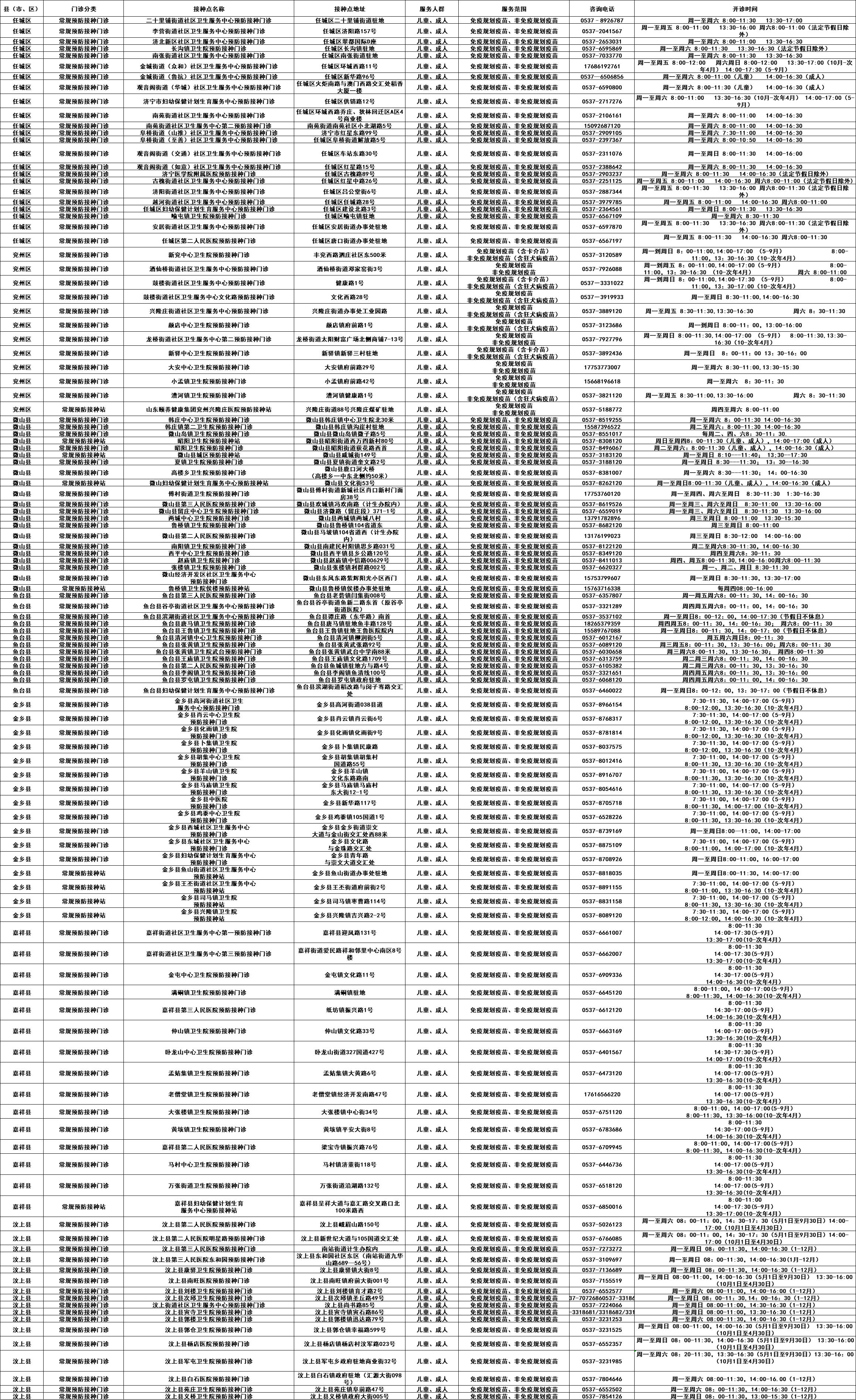 济宁市预防接种门诊开诊情况公示(常规预防接种门诊)